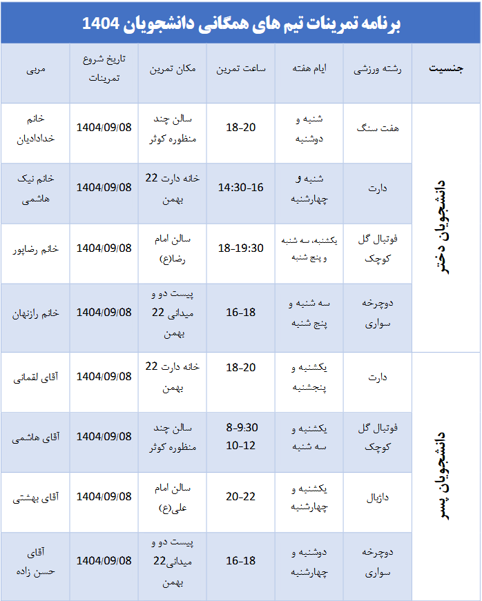 پاییزِ پرانرژی در فردوسی مشهد! تمرینات تیمهای ورزش همگانی، ویژه دانشجویان دختر و پسر، آغاز شد!