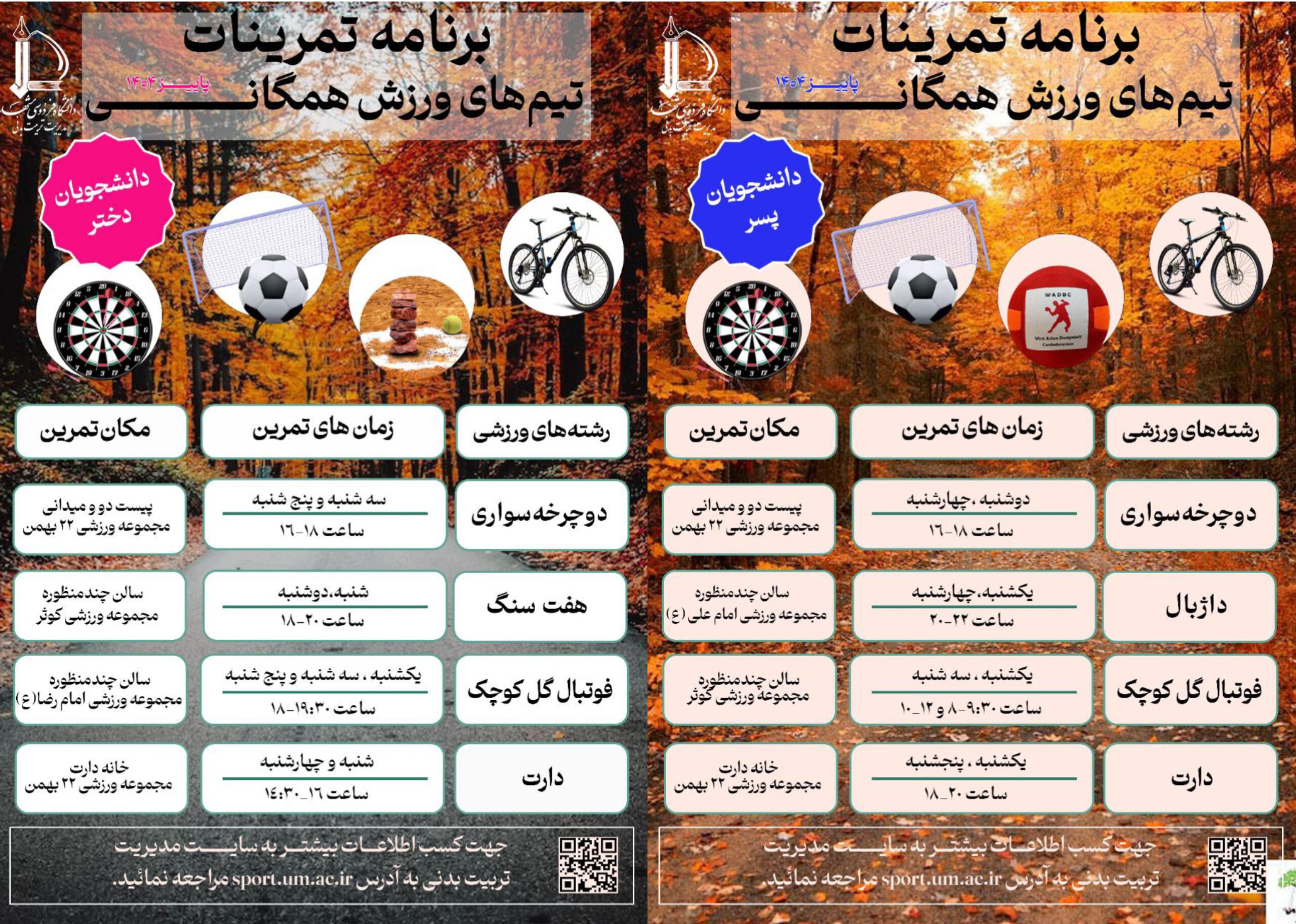 اطلاعات بیشتر و ثبتنام: sport.um.ac.ir